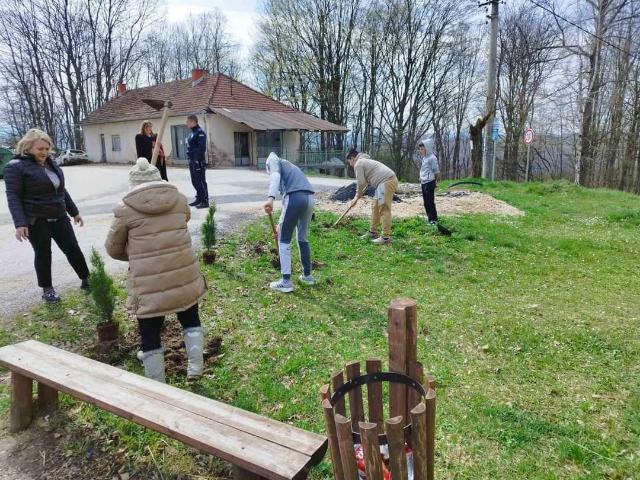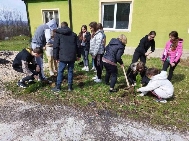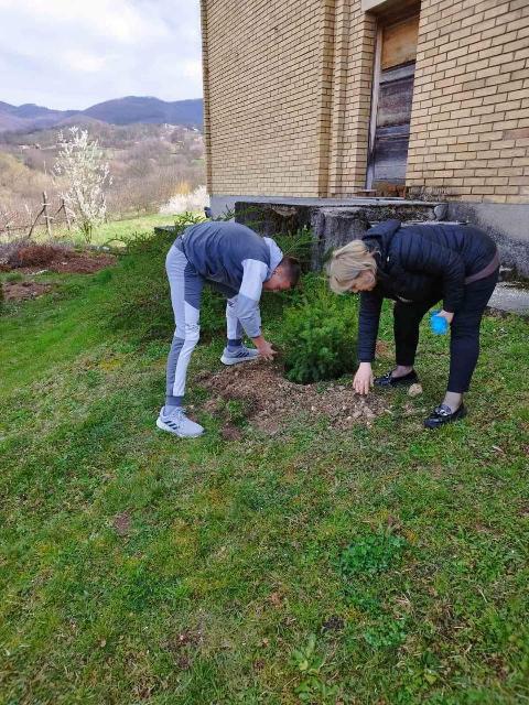 Заједно са ђацима саднице су садили г. Тутуновић, госпођа Снежана Илић, директор школе у Горачићима и наставник биологије Вера Ненадовић.