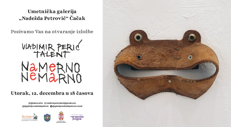 Samostalna izložba Vladimira Perića Talenta „NAMERNO – NEMARNO“ biće otvorena u utorak, 12. decembra, u 18 časova u Umetničkoj galeriji „Nadežda Petrović“ i trajaće do kraja januara 2024.