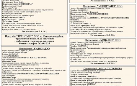 СЕРВИСНЕ ИНФОРМАЦИЈЕ за ПЕТАК, 1. октобар