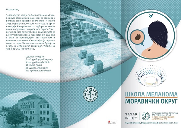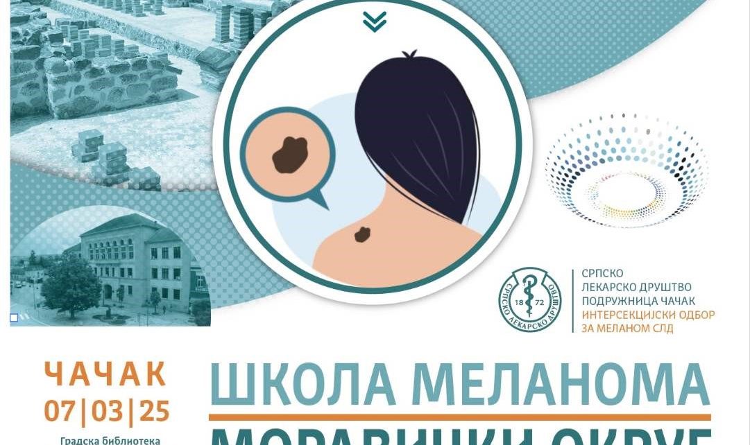 Симпозијум „Школа меланома – Моравички округ“, биће одржан у Великој сали Градске библиотеке Чачак, 7. марта, са почетком у 10 часова, у организацији Интерсекцијског одбора за меланом СЛД, уз подршку Српског лекарског друштва – Подружнице Чачак.