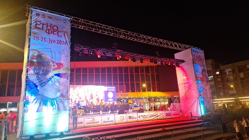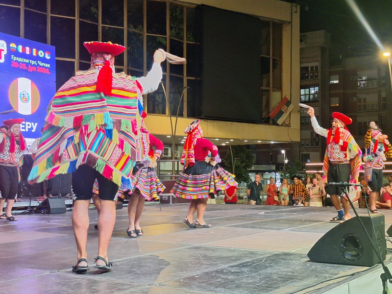 Синоћ је на Градском тргу одржан концерт међународних фолклорних група, где су гости бројној публици представили игре својих земаља. Публика је имала прилику да осети атмосферу са великих међународних фестивала, коју су фолклораши донели у Чачак. Чланови Културно-уметничког друштва „Дуле Милосављевић Желе“ своју сарадњу и пријатељство са бројним уметницима из различитих земаља света, преточили су у импозантан фестивал фолклора, какав је „Етно-фест”. Управо због свега тога, фестивал су подржали CIOF, Министарство омладине и туризма и Град Чачак.