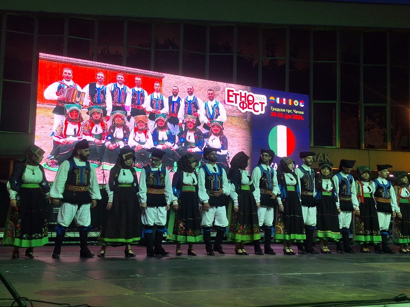 На синоћњем концерту први су се представили Италијани, односно национални ансамбл са Сардиније, који је извео своје традиционалне игре и песме. Овај ансамбл гаји дугогодишње пријатељство са Културно-уметничким друштвом „Дуле Милосављевић Желе“, а заједно су наступали на бројним фестивалима.