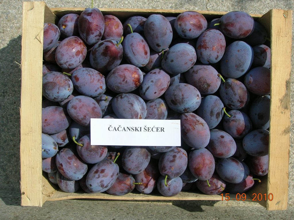 Покожица плода ове сорте је пурпурно-плаве боје са сребрнастим пепељком и то је прва чачанска сорта са каснијим временом зрења која има ту боју покожице. Даје крупне плодове, просечне масе 40 грама. Мезокрап је жуте боје, чврст, сочан, слатког укуса, са ситном коштицом. Плодови сазревају касно, од краја треће декаде августа до краја прве декаде септембра.