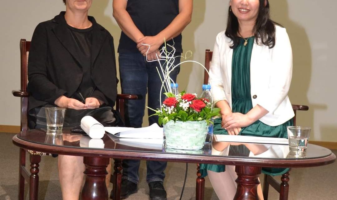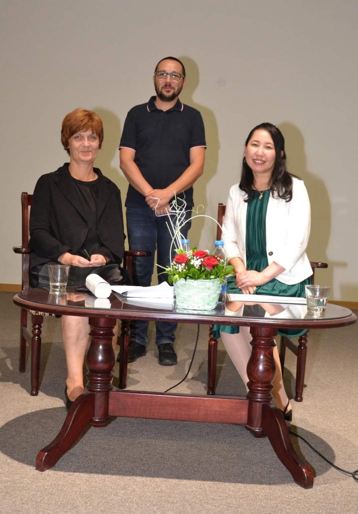 Гошћа вечери је рад и дело проф. Танаке подробније објаснила публици. Наиме, он је радио као уредник у једној издавачкој кући која је објављивала дела српских аутора на јапaнском језику, што је још један доказ о уважавању српске културе и још једног вида српске уметности. Међу преведеним писцима су и Иво Андрић, Миодраг Булатовић, акадамик Георгије Острогорски и остали.
