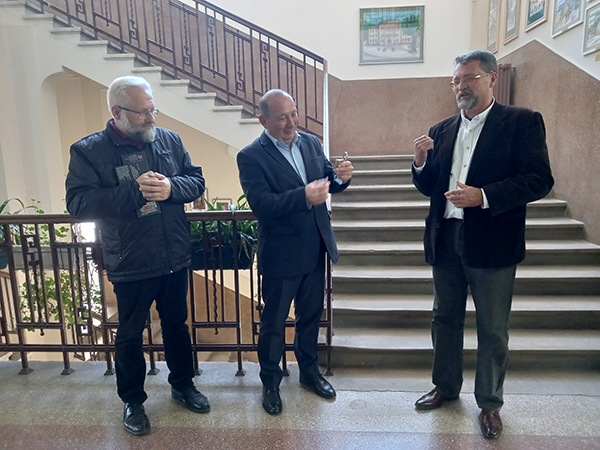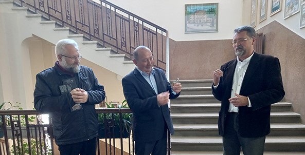 – Господин Душко Милошевић, архитекта из Београда, одлучио је да поклони 12 акварела и четири “Куле” Гимназији, али и Граду Чачку, који му је посебно драг. Иискористио бих прилику да захвалим архитекти Милошевићу на овом изузетном поклону. Поред тога што ће оплеменити наш школски простор, сигуран сам да ће бити инспирација и за наше ученике и да ће његова племенита намера, његови акварели имати своју мисију и у будућности. Шеснаест слика се одлично уклопило у наш амбијент, јер ми већ имамо неколико простора у школској згради, односно, ходнике које на сличан начин уређујемо. Ово је изузетно доброчинство – рекао је Иван Ружичић и у име свих ученика и професора захвалио господину Милошевићу. Директор је у знак сећања на овај дан архитекти поклонио комплет књига, издања Гимназије у претходном периоду: “Знам да добро познаје историју нашег Града и школе, али желим да овај дар наше пријатељство још више учврсти, а можда ће му мали знак захвалности допунити знања о нашој школи”.