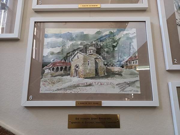 – Одатле идеја да стална поставка ових акварела буде у Чачку. Док сам радио баш ту серију од 12 акварела, који су посвећени манастирима Овчарско-кабларске клисуре, у том тренутку сам желео да буду изложени у Чачку и то на неком месту где ће моћи слободно да их види већи број Чачана, осим ђака. Наравно, Гимназија је право место, јер она је храм знања – нагласио је архитекта.