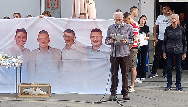 Окупљени родитељи, рођаци, пријатељи и другови четири анђела заједно су послали поруку – да се никада никоме не понови! На свечаном откривању мурала обратио се и један од родитеља, уз захвалност градоначелнику Чачка Милуну Тодоровићу и свима који су помогли да се очува сећање на ове дивне младиће, да Градски трг прерасте у место младости и љубави.