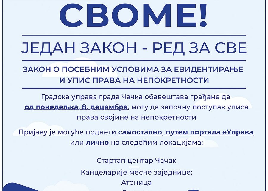 Од 8. децембра грађани могу да започну поступак уписа права својине на непокретности.