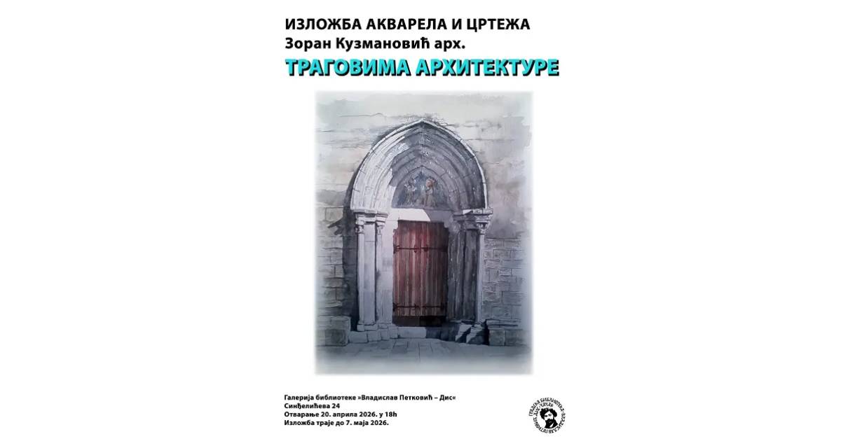 У понедељак, 20. априла, у 18 часова, у Галерији Градске библиотеке биће отворена изложба радова Зорана Кузмановића, посвећених старој српској градској и сеоској архитектури, црквама и манастирима у техници акварела.