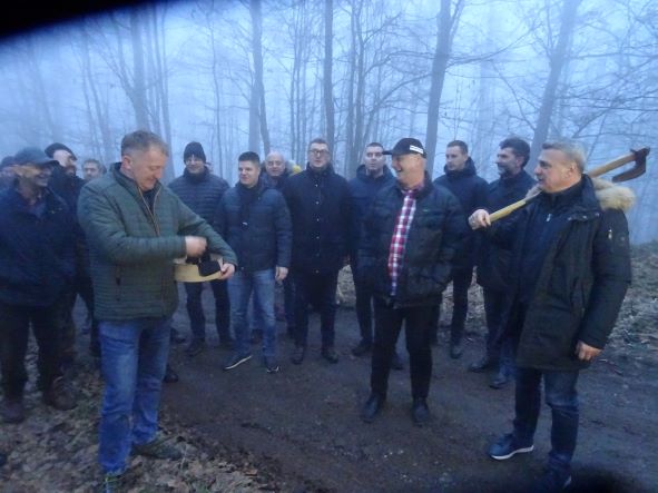 Бадњак који је јутрос одсечен у Брезовицама биће запаљен данас у 17 часова у порти цркве Вазнесења Господњег.