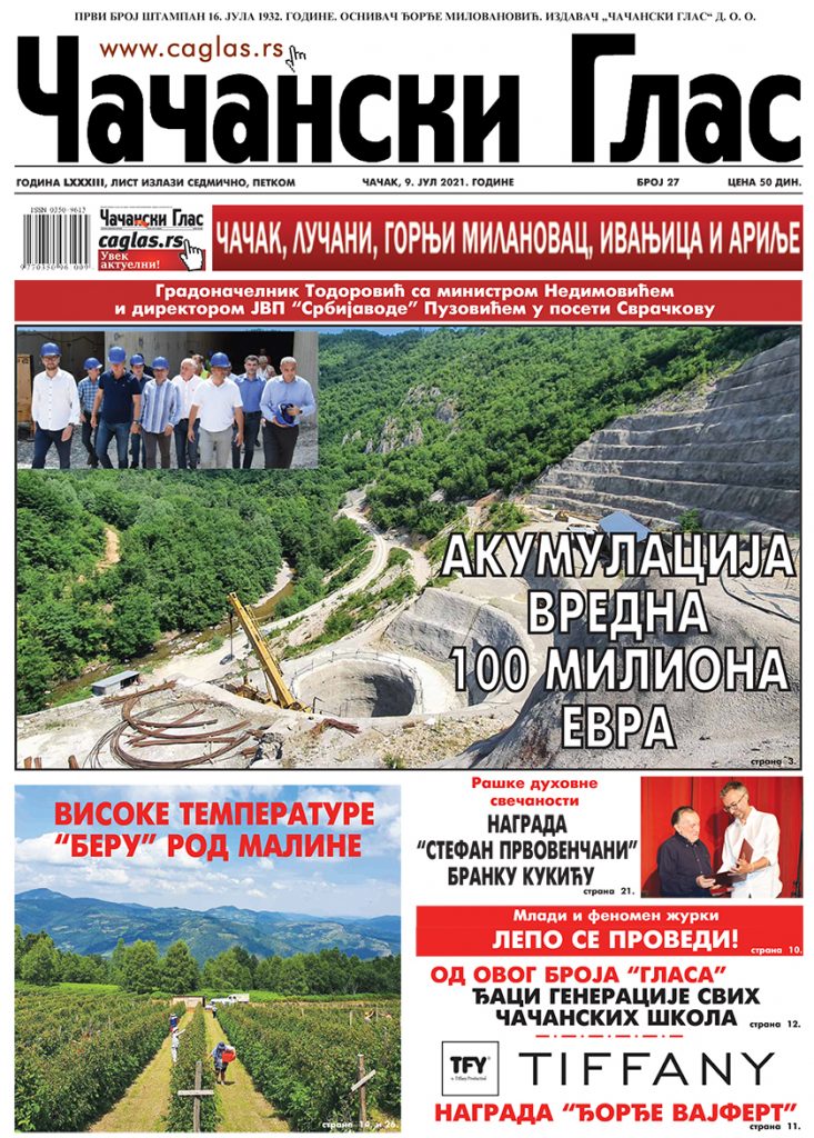 – ОД ОВОГ БРОЈА ЂАЦИ ГЕНЕРАЦИЈЕ СВИХ ЧАЧАНСКИХ ШКОЛА