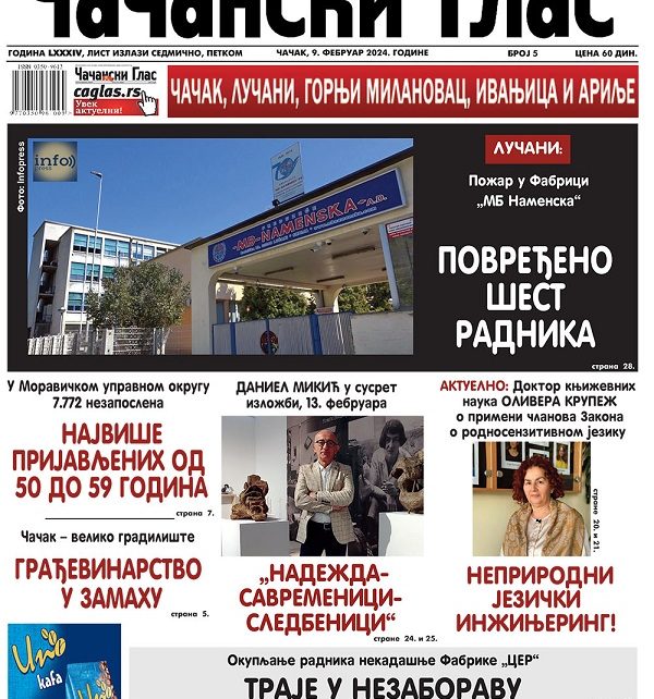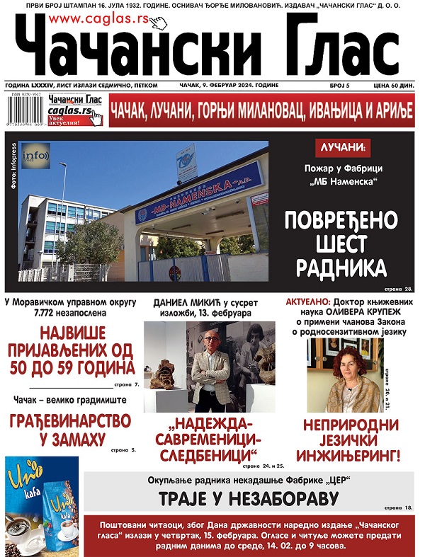 Због Дана државности наредно издање „Чачанског гласа“ излази у четвртак, 15. фебруара. Огласе и читуље можете предати радним данима до среде, 14. 02. до 9 часова.