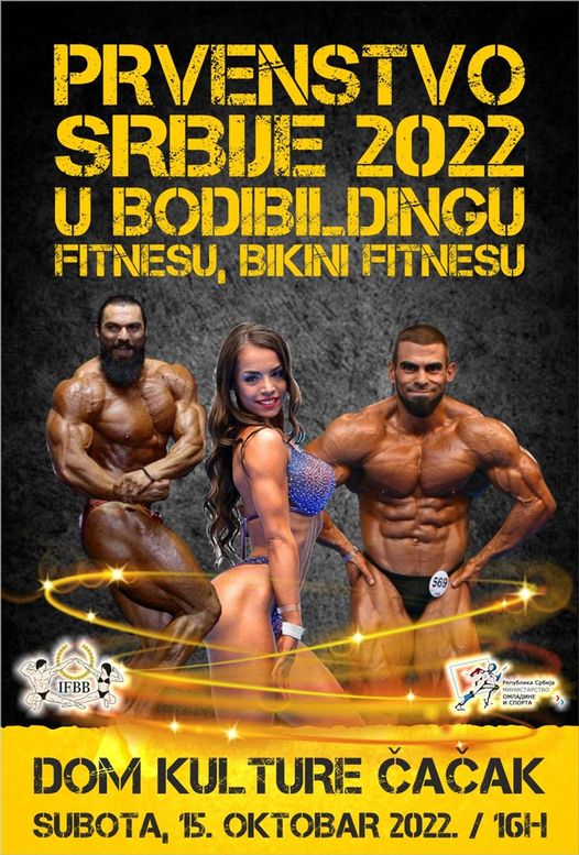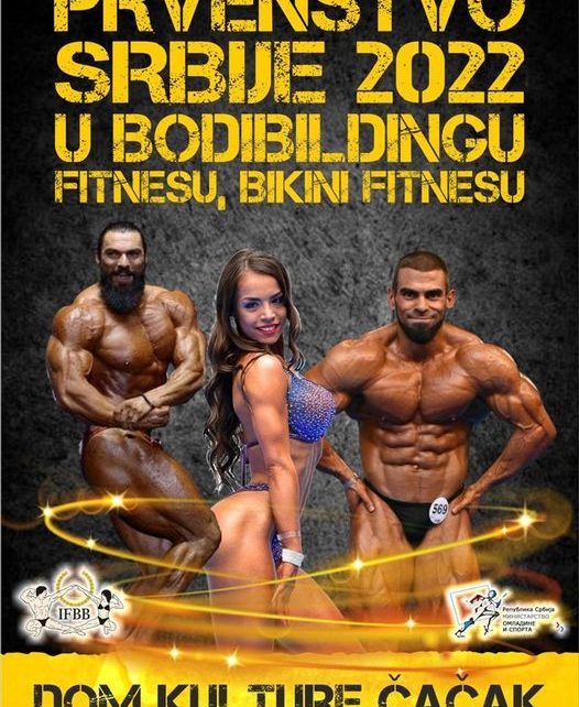 У суботу 15. октобра у Великој сали Дома културе у Чачку одржаће се такмичење ,,ПРВЕНСТВО СРБИЈЕ 2022” у боди билдингу и фитнесу у организацији Савеза Србије за боди билдинг, фитнес, боди фитнес и аеробик и Боди билдинг и фитнес спортског клуба Белфра.