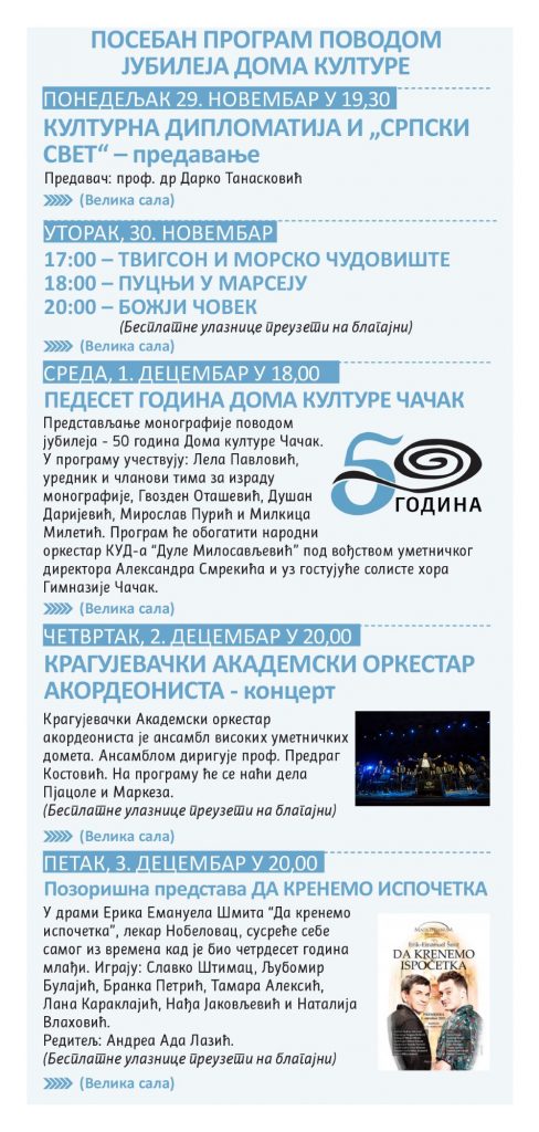 У ПETAK, 10. ФЕБРУАРА, У 19,30 ЧАСОВА, У ЛИКОВНОМ САЛОНУ КУЛТУРНОГ ЦЕНТРА ЧАЧАК БИЋЕ ОТВОРЕНА ИЗЛОЖБА СЛИКА МИЛИЦЕ РАИЧЕВИЋ Милица Раичевић (1974. Београд), визуелна уметница. Факултет ликовних уметности и магистарске студије завршила на Факултету ликовних уметности у Београду. Тренутно на трећој години PhD програма на Факултету савремених уметности у Београду. На интернационалној визуелној сцени последњих година присутна је са својим перформативним […]