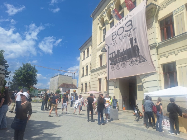 Протест „Задњи воз за Чачак“ који организују студенти Факултета техничких наука и матуранти чачанске Гимназије, почео је данас у 11 часова и планирано је да траје до 23 часа.