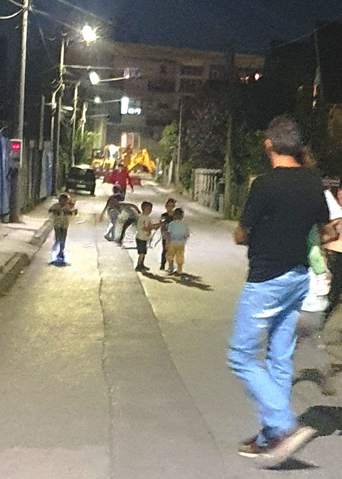 Овако изгледа топла јесења ноћ у улици која је затворена за саобраћај. Уместо непријатног звука аутомобила, пријатна дечја граја.